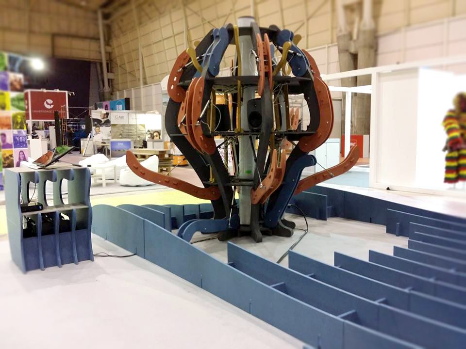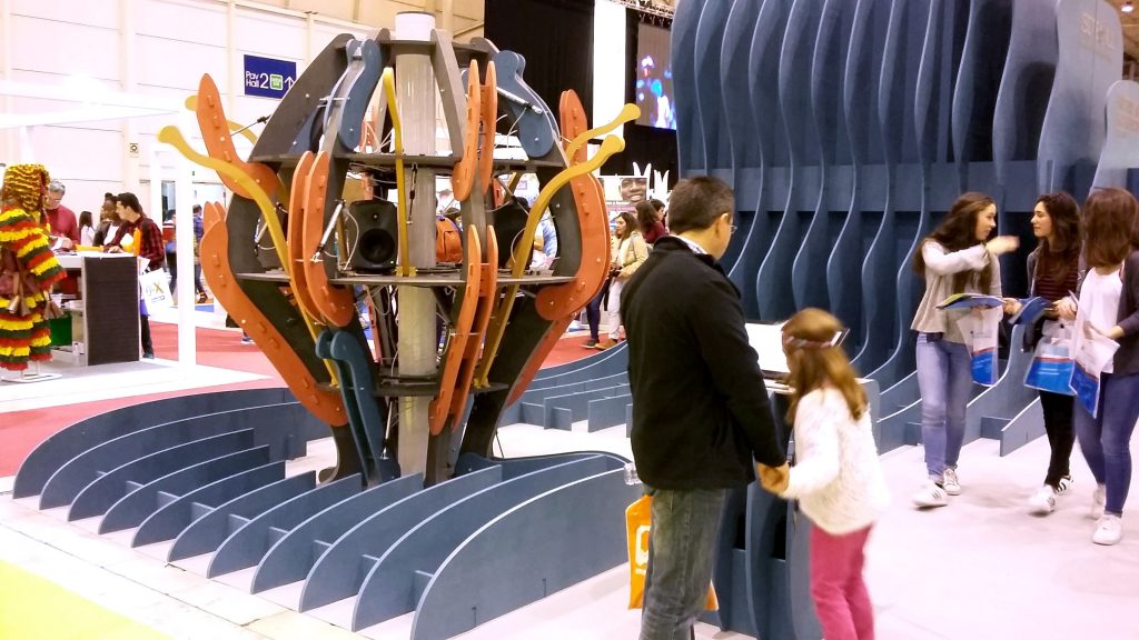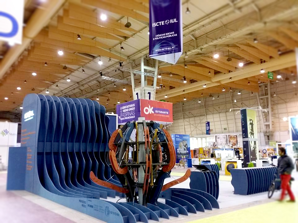 The project for the ISCTE-IUL Futurália Stand of 2016 had two premises. It had to include an interactive installation called Morfogénese Musical, a project in partnership between the university through Vitruvius FabLab and the Instituto Gulbenkian de Ciência of Calouste Gulbenkian Foundation. The installation is a robotic flower that interacts with the people to teach about the genetic code of a plant. It had also to have a big storage unit for the merchandising of the institution to be distributed to the visitors.