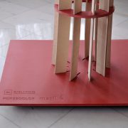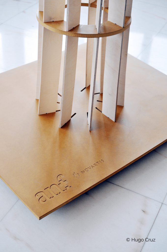 The whole structure was mounted on wheels to be moved around with no trouble and can be easily assembled, thanks to simple CNC milled slots.